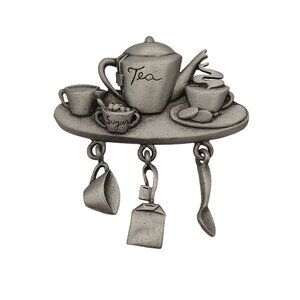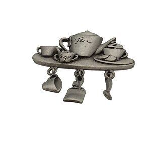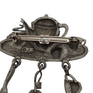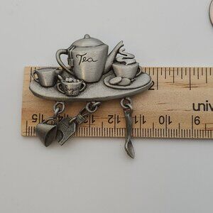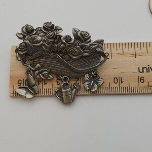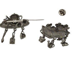 Vtg Brooch Pin Set of 2 Tea & Garden Theme Dangle Butterflies Basket Picnic