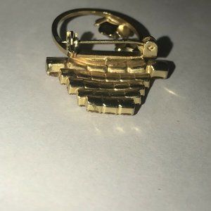 Vtg Brooch Yellow Flowers Basket Glass Rhinestone Pin Metal Flowers 1 /12' Tall