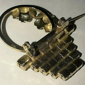 Vtg Brooch Yellow Flowers Basket Glass Rhinestone