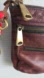 Has darkening discoloration spots and patina to hardware from age.