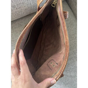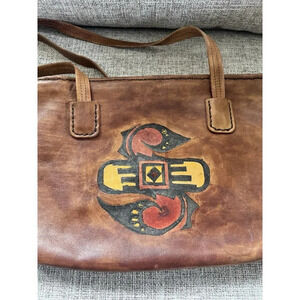 Vtg Brown Leather Shoulder Bag Boho Native American Polychrome Geometric Figure