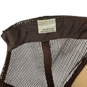 This Brown Steel Trucker Hat is crafted with a breathable mesh back and a structured front panel for durability. An adjustable snapback ensures a comfortable fit.