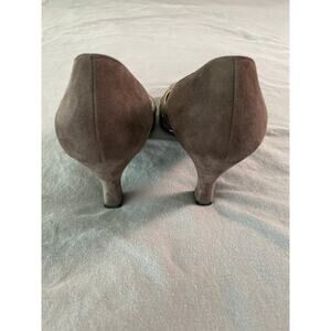 Vtg. Bruno Magli Made in Italy Sueded Tan Heels with Gold Dash detailing SZ 9