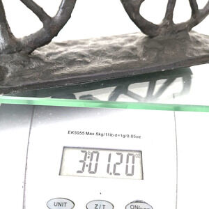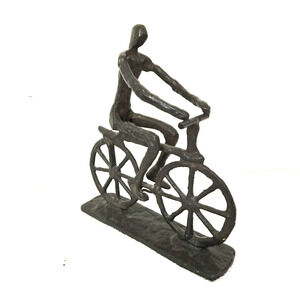 Vtg Brutalist Cast Iron Metalwork Cyclist Bicycle Sculpture Bookend Decor *READ*