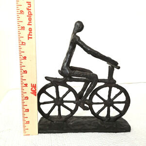Vtg Brutalist Cast Iron Metalwork Cyclist Bicycle Sculpture Bookend Shelf Decor