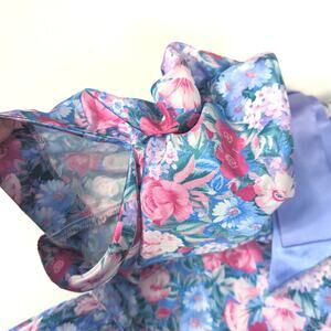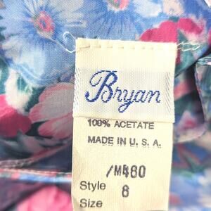 Vintage Bryan beautiful pink and blue wallpaper floral dress with a princess waist. Size 8