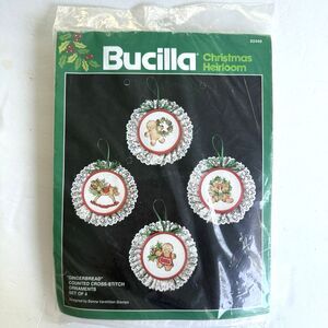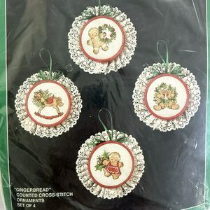 Vtg Bucilla "Gingerbread" Counted Cross-Stitch Ornament Kit Set Of 4 Christmas
