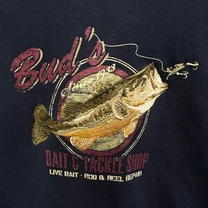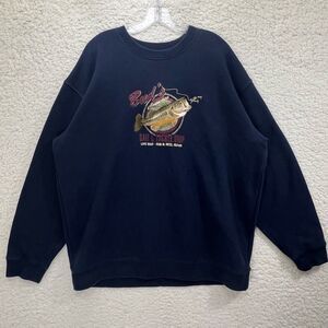 Vtg Bud’s Bait & Tackle Shop Fishing Crewneck Sweatshirt XL Navy Croft & Barrow