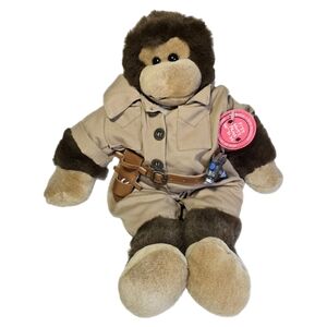 Vintage 1997 Build A Bear Monkey Chimpanzee wuth Construction Outfit - Handyman Mechanic with Tool Belt and Hammer. Outfit still has tag on it. Monkey does have a sound chip or something in the arm that does not work.
