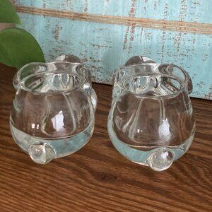 Vtg Bunny Rabbit Clear Glass Figurines 3" X 2" Candle Tea Light Set Of 2