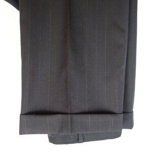 Vintage Burberrys 100% pure wool dark shale-blue striped suit with shoulder pads from Lord & Taylor’s Private Editions collection.
