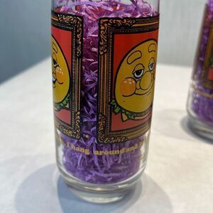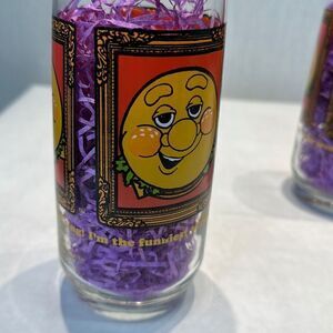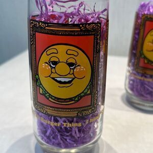 Print around bottom of glass reads: “I’m the funniest burger I’m the Burger Thing I hang around and joke and sing!”