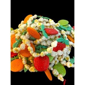 Vtg Buttered Popcorn & Fruit Garland Plastic Blow Mold Christmas Tree 5 Strands