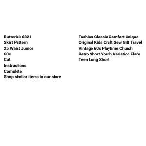 Butterick 6821 Skirt Pattern 25 Waist Junior 60s Cut Instructions Complete