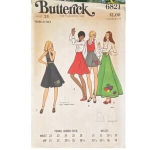 Vtg Butterick 6821 Skirt Pattern 25 Junior 60s Variation Flare Teen Long Short