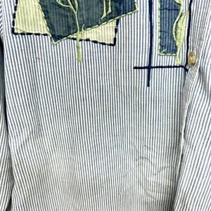 Vtg CASEY & MAX Blue 90's Styled Button Down Embroidered Long Sleeve Button Up