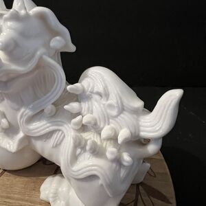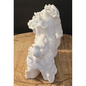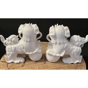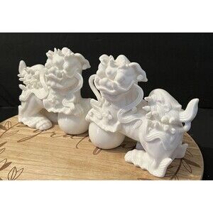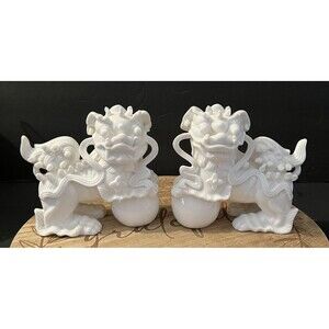 Vtg CDGC Imports Japan Foo Dogs Guardian Lions Statues Pair White Porcelain 5.5"