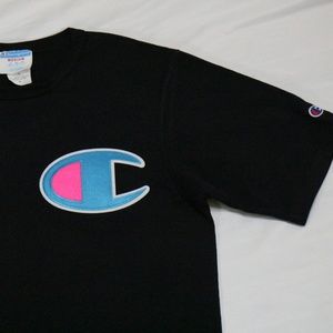 Vintage patch logo Champion shirt with alternate colorway Champion logo and small Champion patch on the left sleeve. No stains, spots, tears, holes, or discoloration. Smoke and pet free.