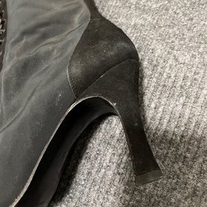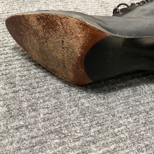 Vintage Black Lace Up Pointy Toe Stiletto Victorian Booties circa 1990s