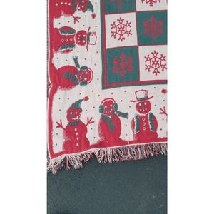 Vtg CHRISTmas Snowman Snowflake Reversible Woven Tapestry Blanket Fringe