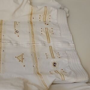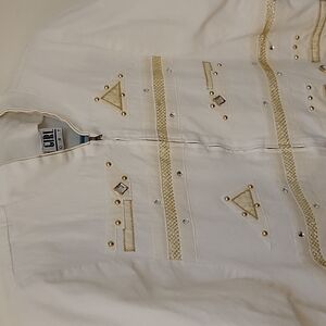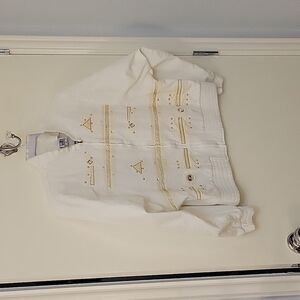 Vtg CITY GIRL 1980s White Geometric Metallic Gold Embellished Holiday Jacket
