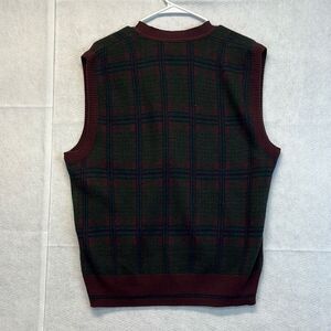 Vintage COLLECTIF Men’s Italian Sweater Vest Wool Blend Button Front Plaid Burgundy Green Size Large