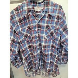 The Vtg COMPASS Men's Medium Flannel Shirt in Blue Plaid is a classic fit, long sleeve button-up shirt perfect for any casual occasion. Made from flannel fabric, this shirt features a traditional point collar and button closure, showcasing a timeless and stylish design. The blue plaid pattern adds a touch of retro charm to the wardrobe, making it a versatile and comfortable piece for everyday wear.