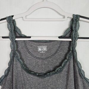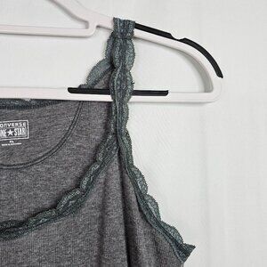 Vtg CONVERSE ONE STAR Y2K Cami Tank Top GRAY w LACE size XL ASO Elena Gilbert