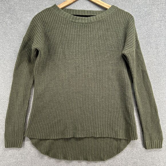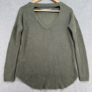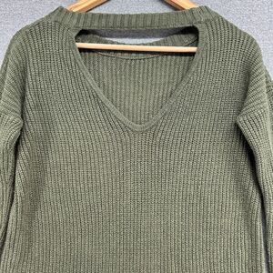 Vtg COTTON-ON Sweater Women's XS Green Knit Large Open Back Cut Out Long Sleeve