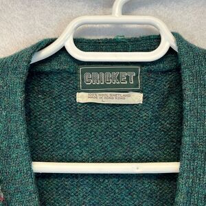 Vtg CRICKET Sweater Vest Unisex Large Green Wool Knit Cardigan Grandpa Academia