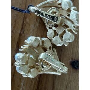 Vtg CROWN TRIFARI Brushed Gold Tone Faux Pearls Earrings Clip On Pin Brooch Set