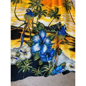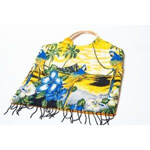 Vtg CZ Cover Up Sequined Dress & Beaded Purse Orange Yellow Blue Sequined Parrots And Hibiscus M