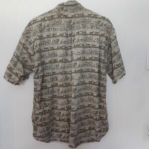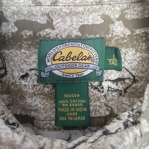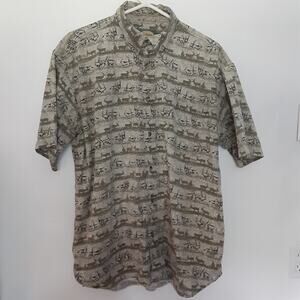 Vtg Cabelas Mens Large Tall All Over Print Antelope Collared Button Down Shirt