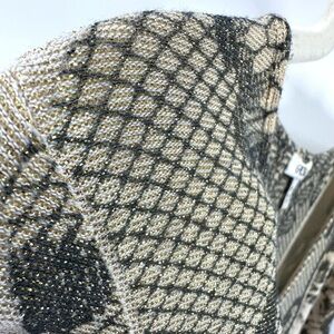 Vtg Cache Womens Metallic Scroll Top Size M Semi Sheer Stretch Long Sleeve Y2K