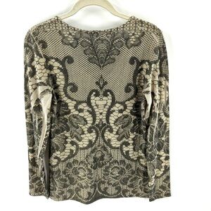 Cache Womens Metallic Scroll Top Size M Semi Sheer Stretch Long Sleeve Y2K