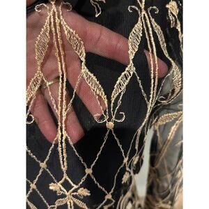 Vtg Cachet Midi Formal Black Chiffon Dress lace Gold overlay sz 9/10 whimsigoth