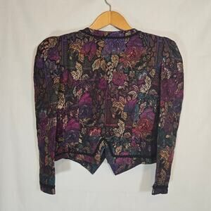 Vtg Cachet by Bari Protas Brocade Jacket Cropped Artsy 11/12 Floral Retro