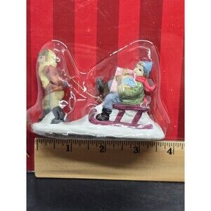Vtg Caldor Share the Joy Village Accessorie Lady Pulling Boy On Sled With Gifts