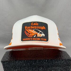 Vtg Cale Yarborough 28 NASCAR Snapback Hat Hardee's Racing 3 Stripe Mesh Mens