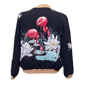 Vtg California 4-U Flamingo Print Bomber Jacket Cotton Boho Indie Retro Sz Small