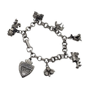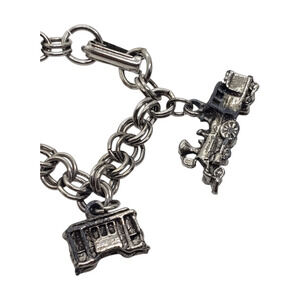 Vtg California 7 Charm Bracelet Souvenir Knotts Cowboy Train Cable Car More