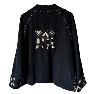 Vtg California Style Jacket Shacket Embroidered Crochet Linen Cotton Artsy Boho Relaxed
