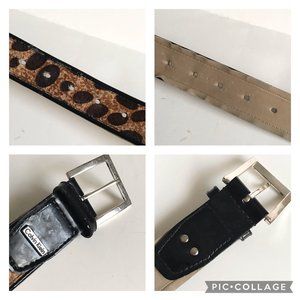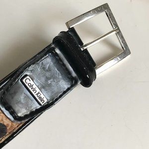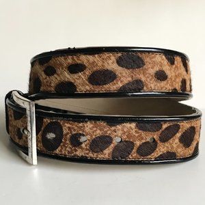 Vtg Calvin Klein Brown Black Leather Belt Womens Size M Cow Fur Spots Cowgirl