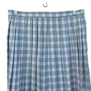 Vtg Cambridge Spirit Wool Plaid Pleated Midi Skirt Wms 12 Green Light Acedemia