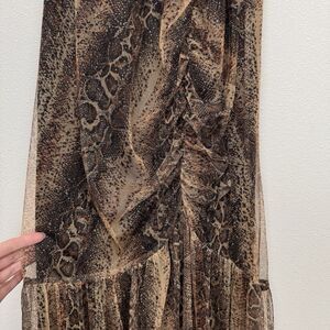 Vtg Candalite Dress Womens Medium Brown Sparkle Maxi Cocktail Event Tulle Ruched