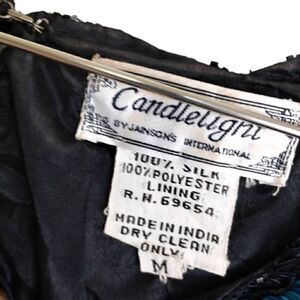 Vtg Candlelight Womans Evening Top Sz Medium Black Silk Sequins Blouse Bling