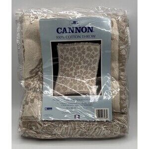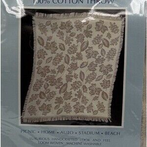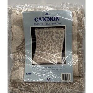 * Vtg Cannon woven cotton throw blanket measuring about 50x60in soft beige color with leaf and nature pattern new old stock never used excellent quality made in USA perfect cozy accent for cottage farmhouse or neutral home decor clean and ready to use ships carefully packed