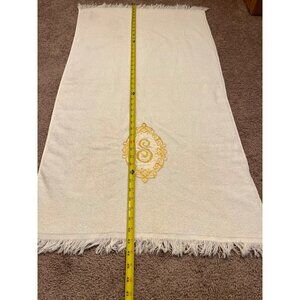 Vtg Cannon White Bath Towel With Fringe & Yellow "S" Embroidery Monogram Glam