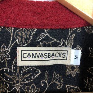 Vtg Canvasbacks Red Wool Jacket Women's Medium Feather Trim Button Front Western