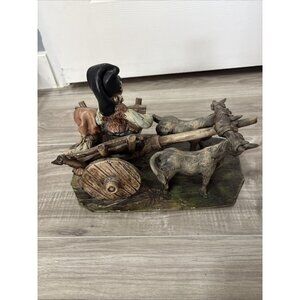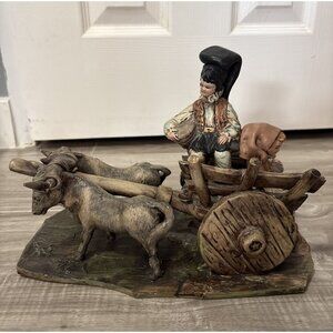 Vtg Capodimonte Figure Italian Sculpture Oxen Cart Wagon Organ Grinder Farmer